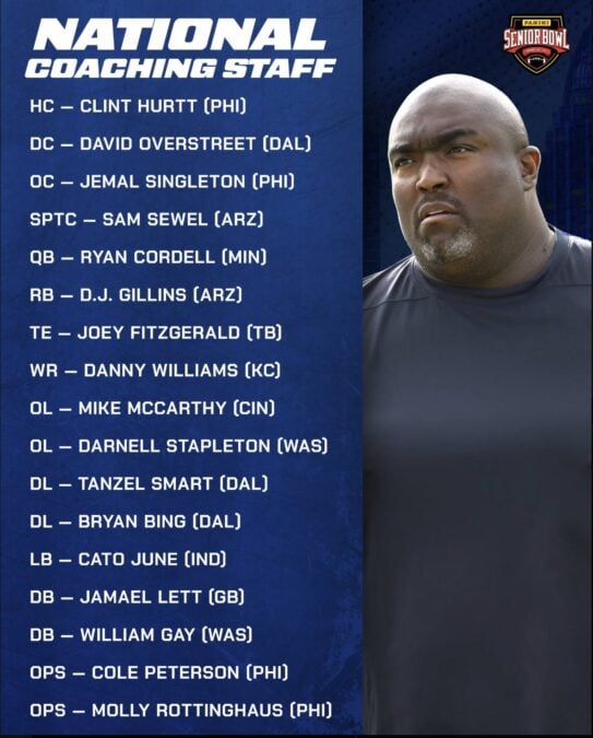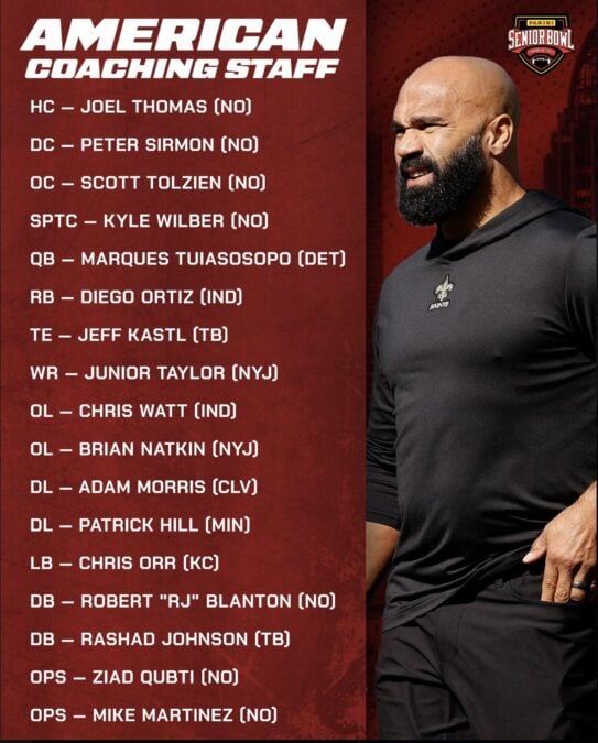 A former NFL quarterback himself, Tuiasosopo has built an impressive coaching résumé over the years, including stops at UCLA, USC, Washington, California, and most recently as offensive coordinator and quarterbacks coach at Rice before arriving in Detroit. His background in developing quarterbacks made him a natural choice for the Senior Bowl role.