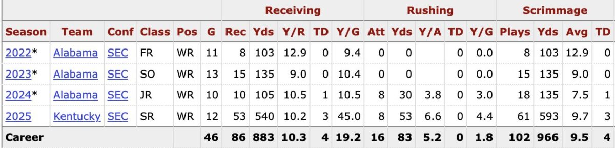 After beginning his career at Alabama as more of a gadget player, Law transferred to the Kentucky Wildcats and saw his role expand in 2025. He primarily operated out of the slot, where he became a quick-hitting, underneath option in the passing game.